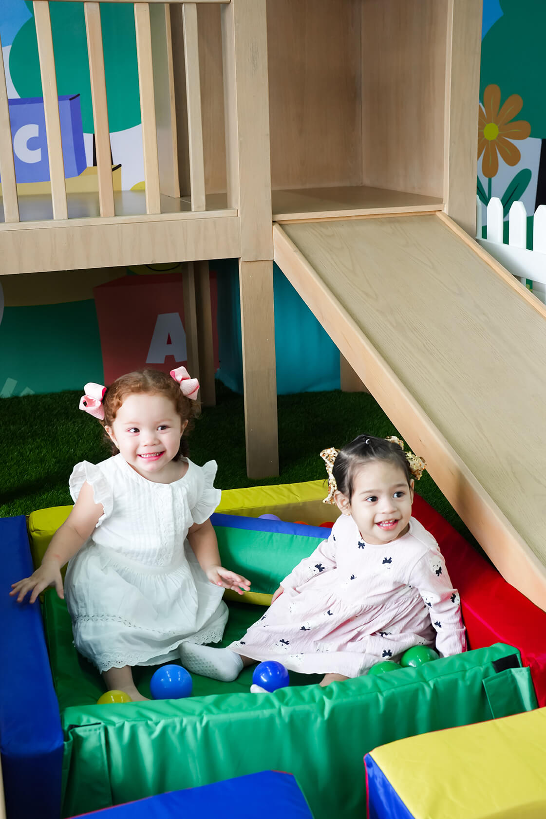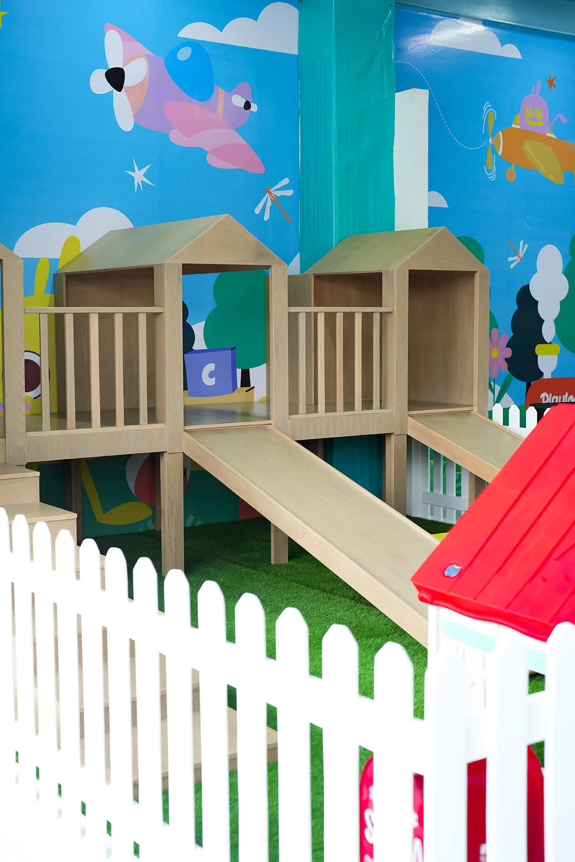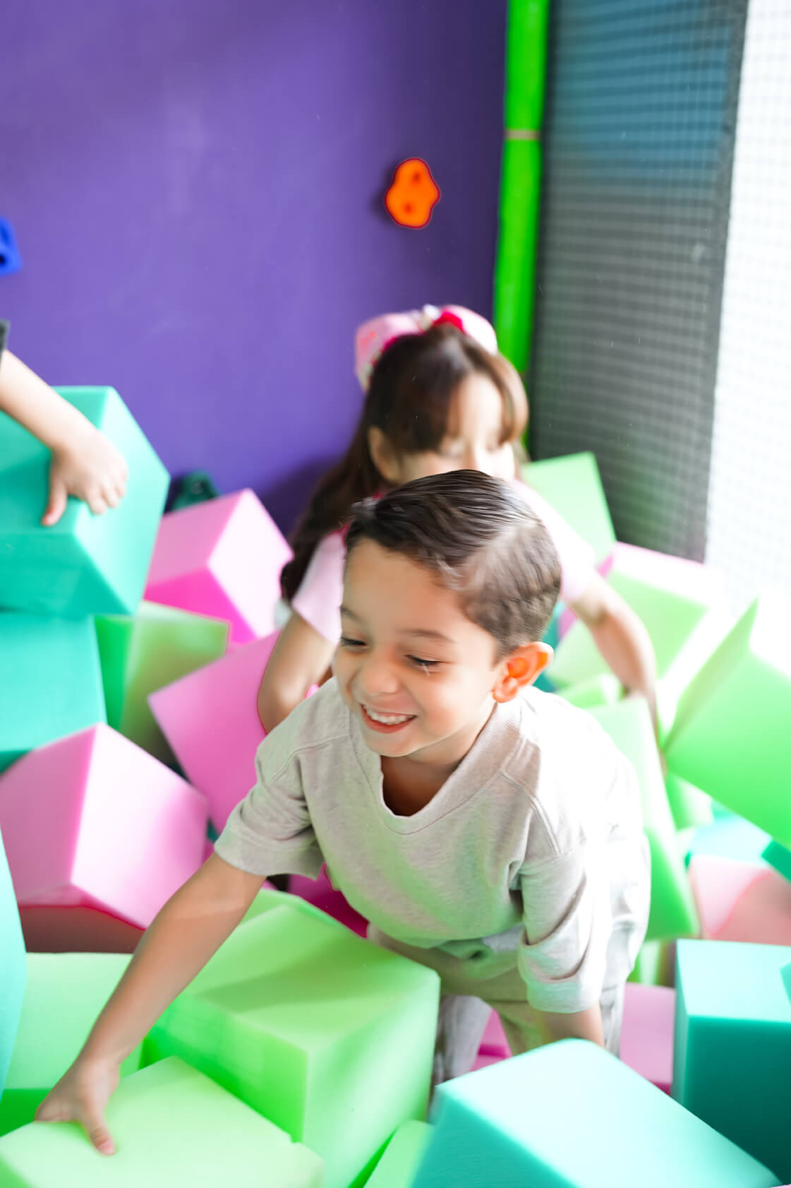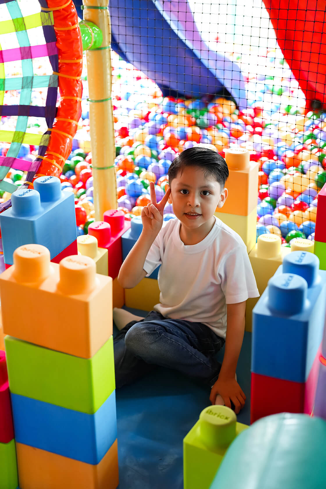 - Espacios interactivos: Juegos de destreza, bloques de foamy, jenga gigante, y un área especial para bebés y niños pequeños.